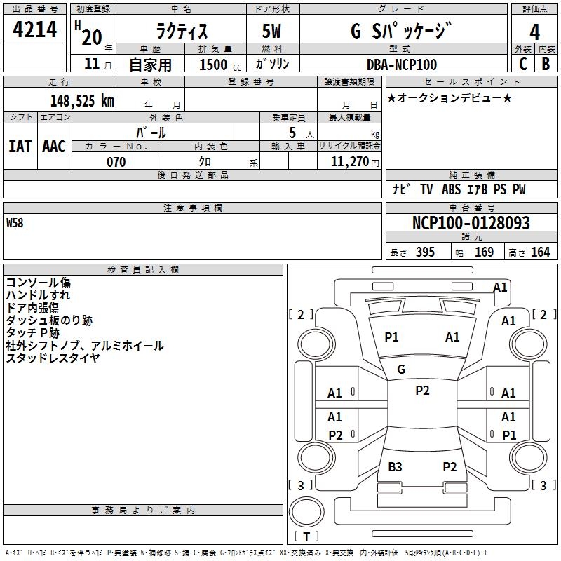TOYOTA RACTIS G S PACKAGE - лот 4214