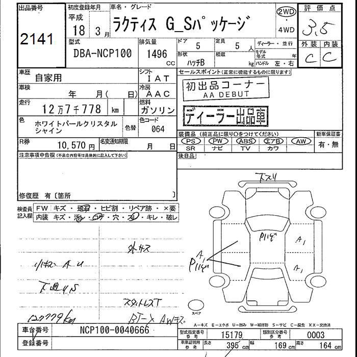 TOYOTA RACTIS G S PACKAGE - лот 2141