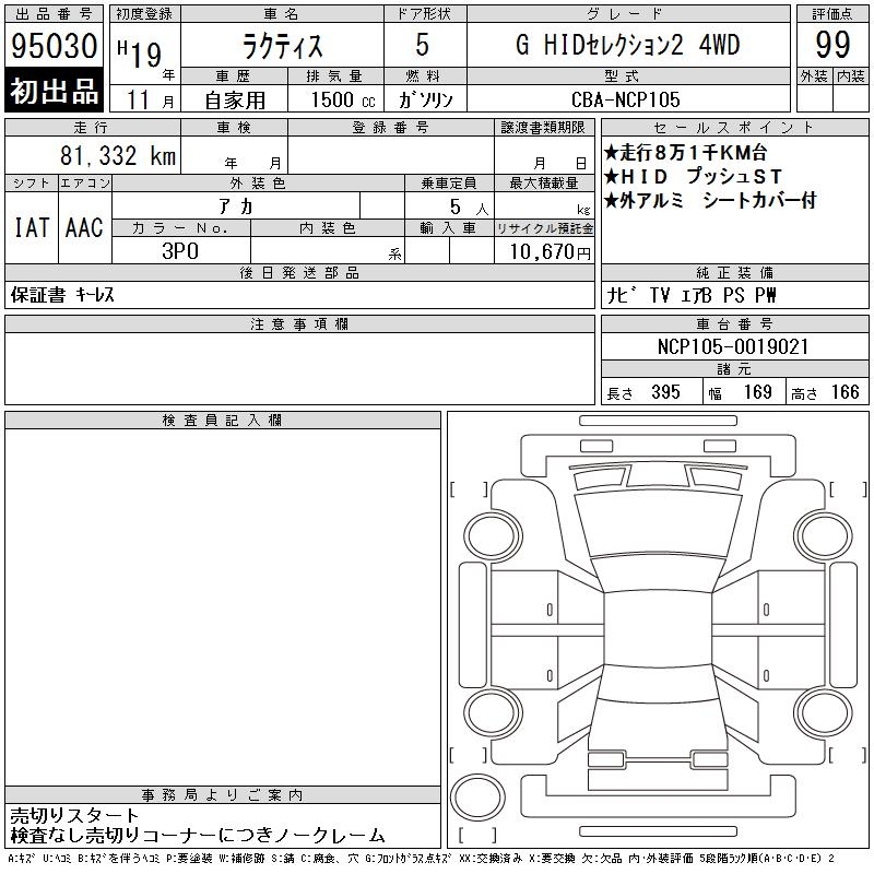 Статистика продаж TOYOTA RACTIS с аукционов Японии