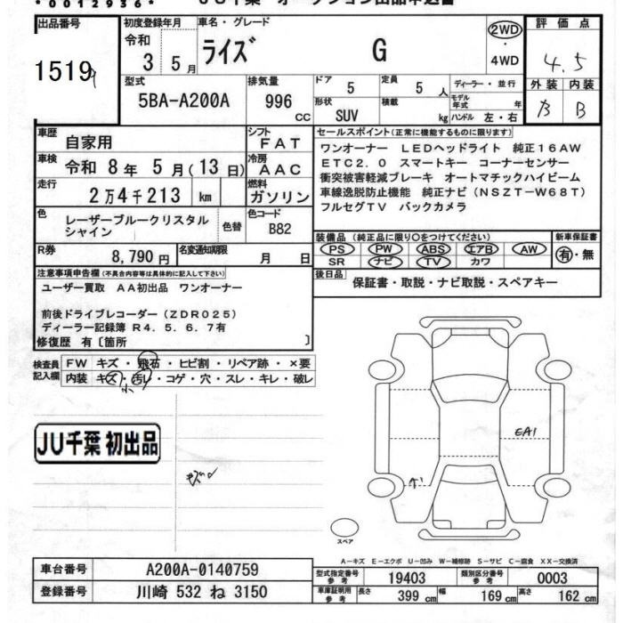 TOYOTA RAIZE - лот 1519