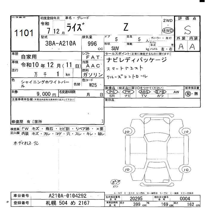 TOYOTA RAIZE - лот 1101