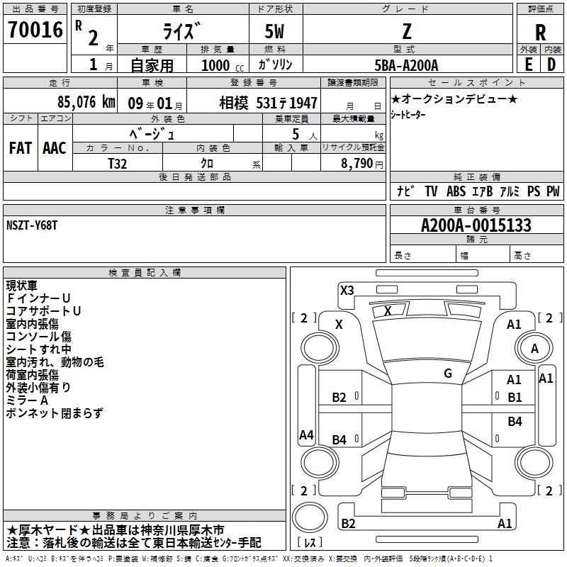 TOYOTA RAIZE - лот 70016