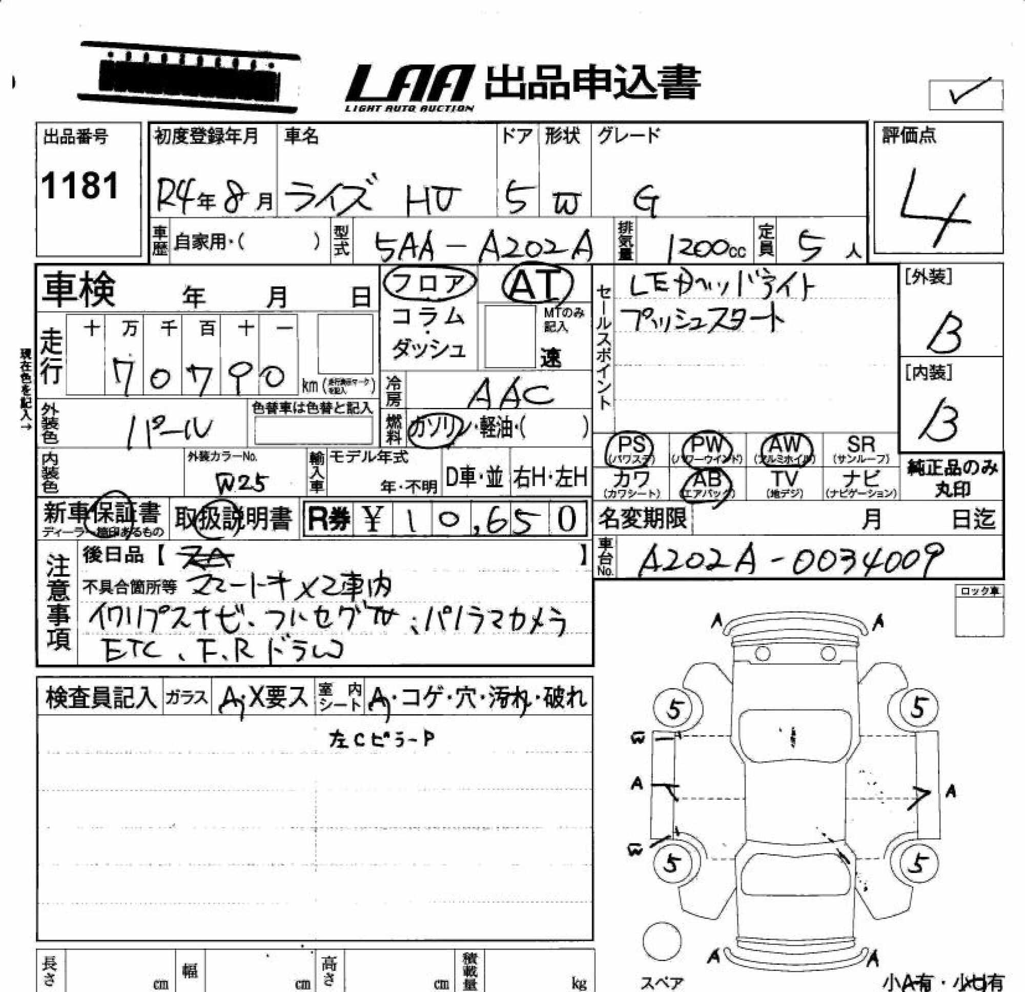 TOYOTA RAIZE - лот 1181