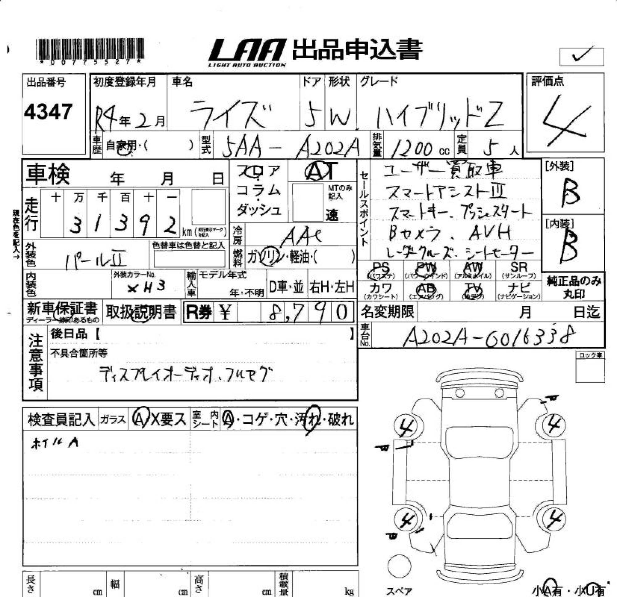 TOYOTA RAIZE - лот 4347
