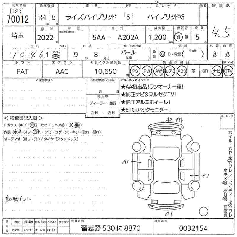 TOYOTA RAIZE - лот 70012