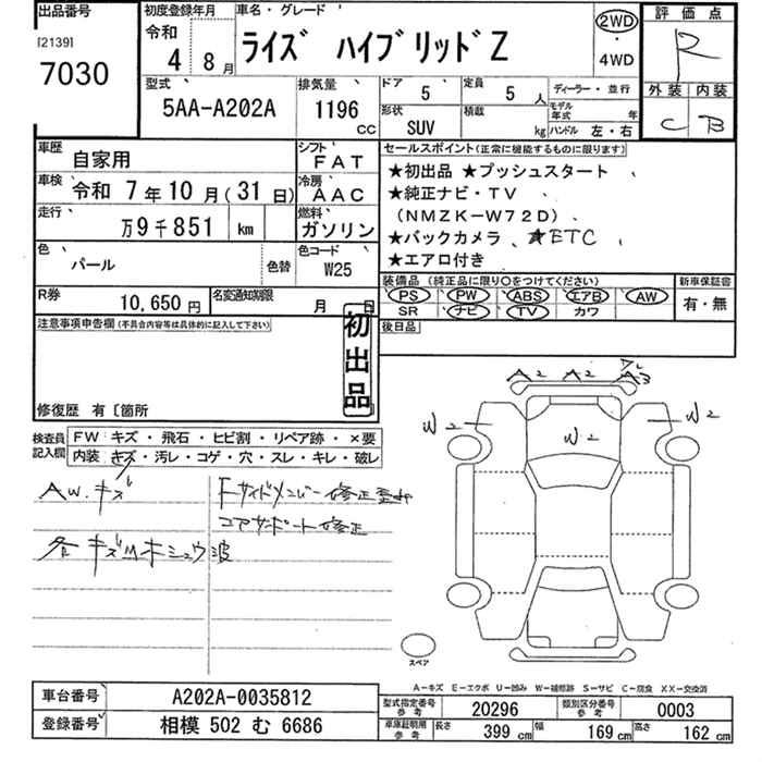 TOYOTA RAIZE HYBRID Z - лот 7030
