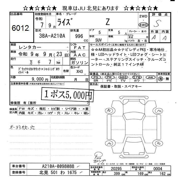 TOYOTA RAIZE - лот 6012