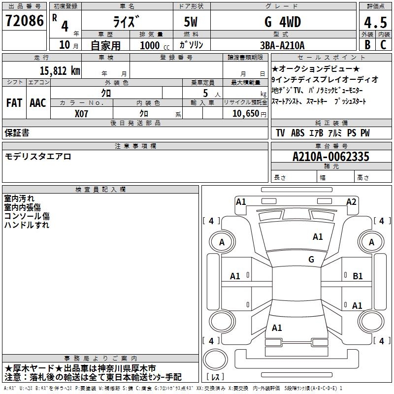 TOYOTA RAIZE G 4WD - лот 72086