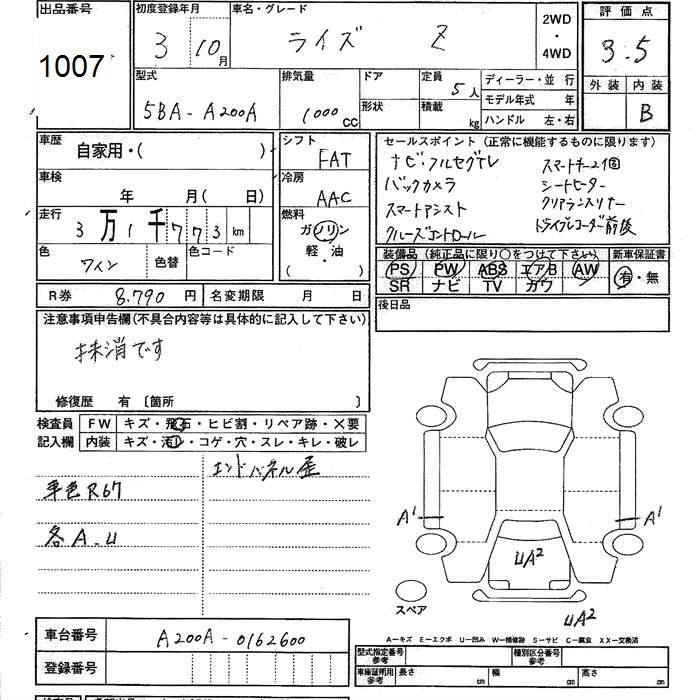 TOYOTA RAIZE - лот 1007