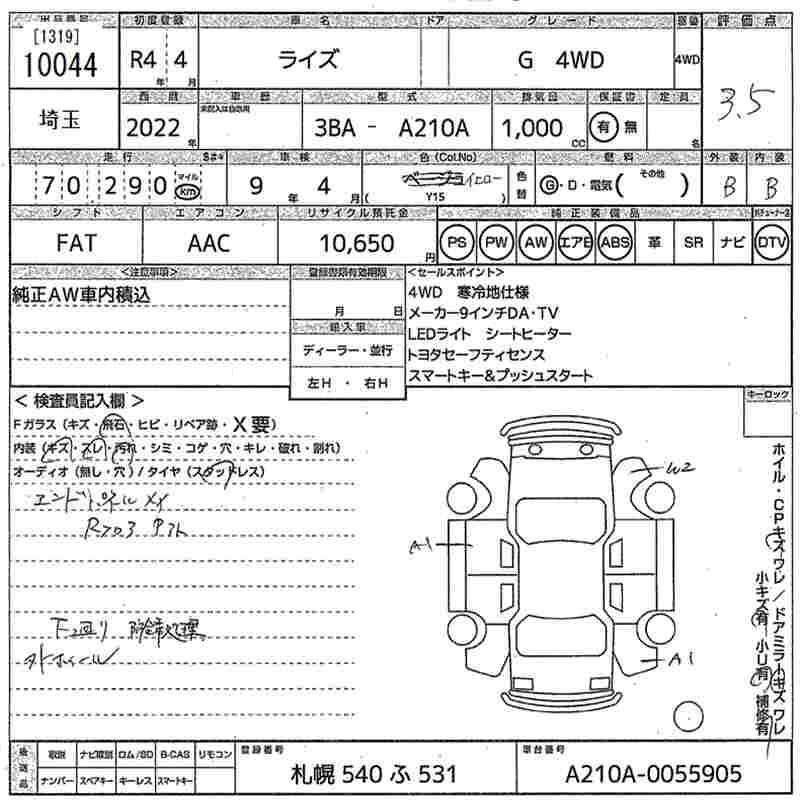 TOYOTA RAIZE - лот 10044