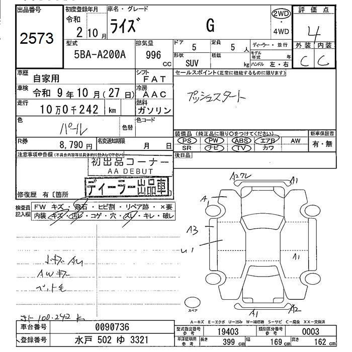 TOYOTA RAIZE - лот 2573