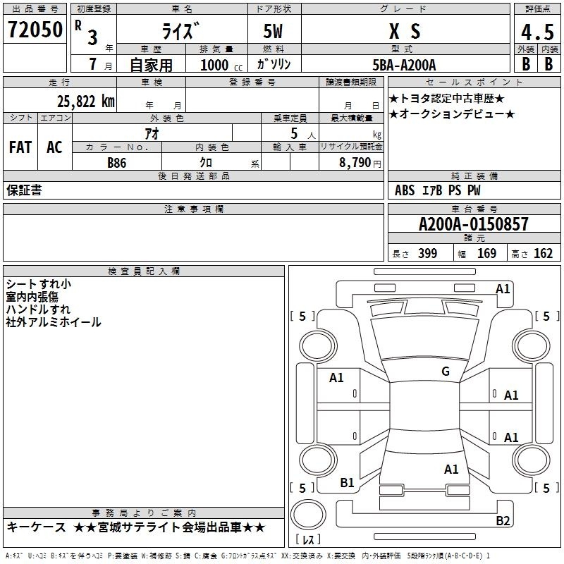 TOYOTA RAIZE - лот 72050