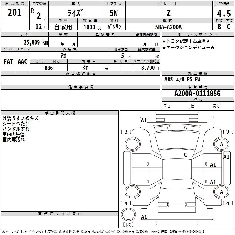 TOYOTA RAIZE - лот 201