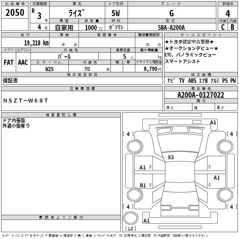 TOYOTA RAIZE - лот 2050