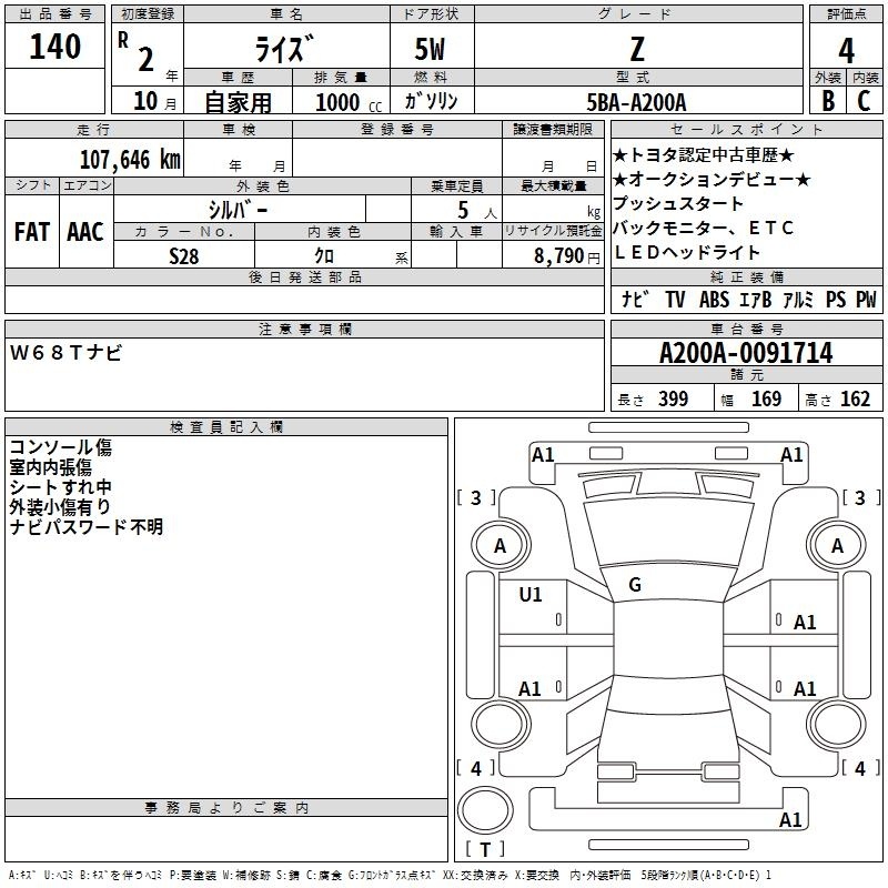 TOYOTA RAIZE - лот 140