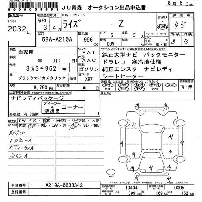 TOYOTA RAIZE - лот 2032