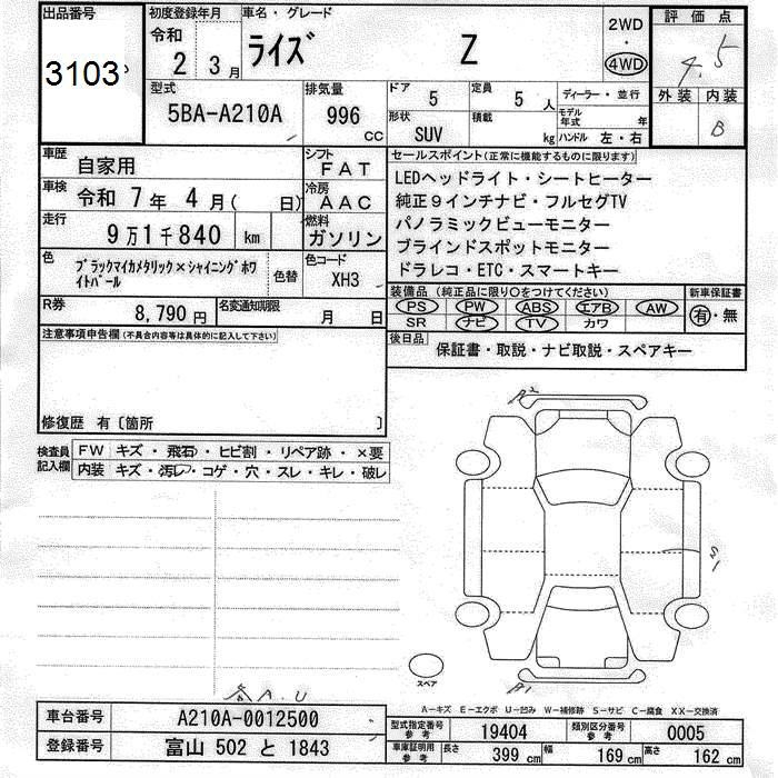 TOYOTA RAIZE - лот 3103