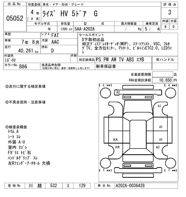 TOYOTA RAIZE - лот 5052