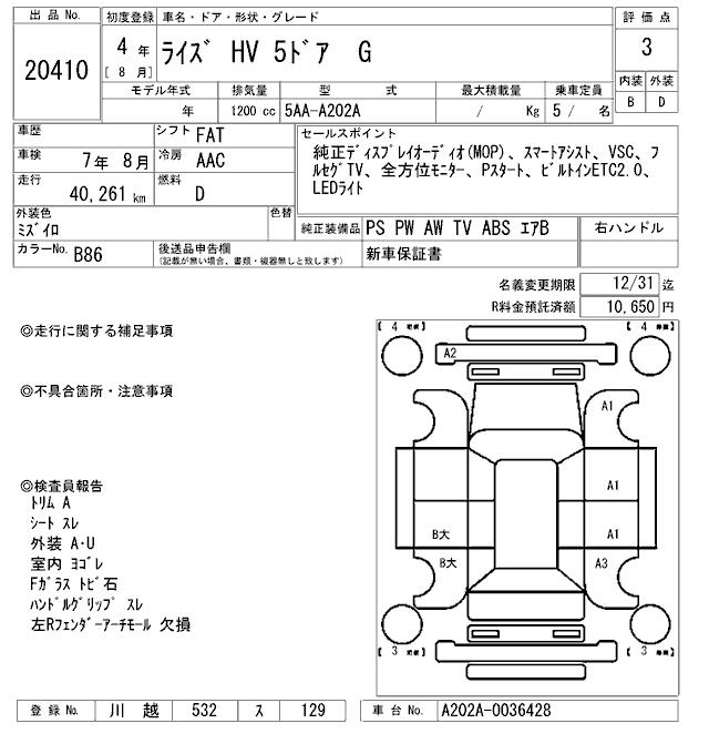 TOYOTA RAIZE - лот 20410