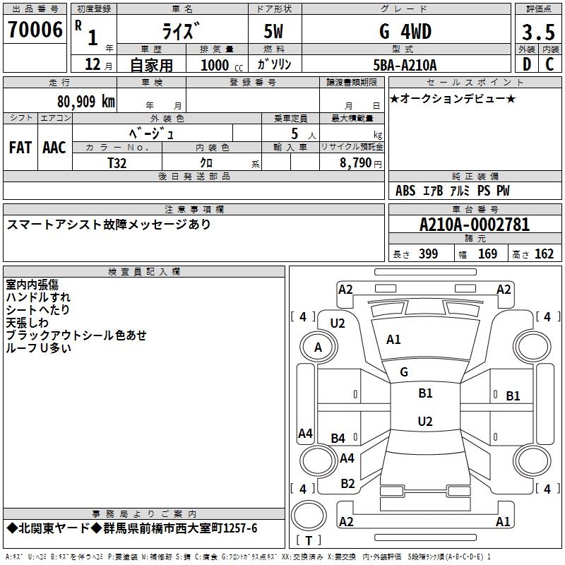 TOYOTA RAIZE - лот 70006