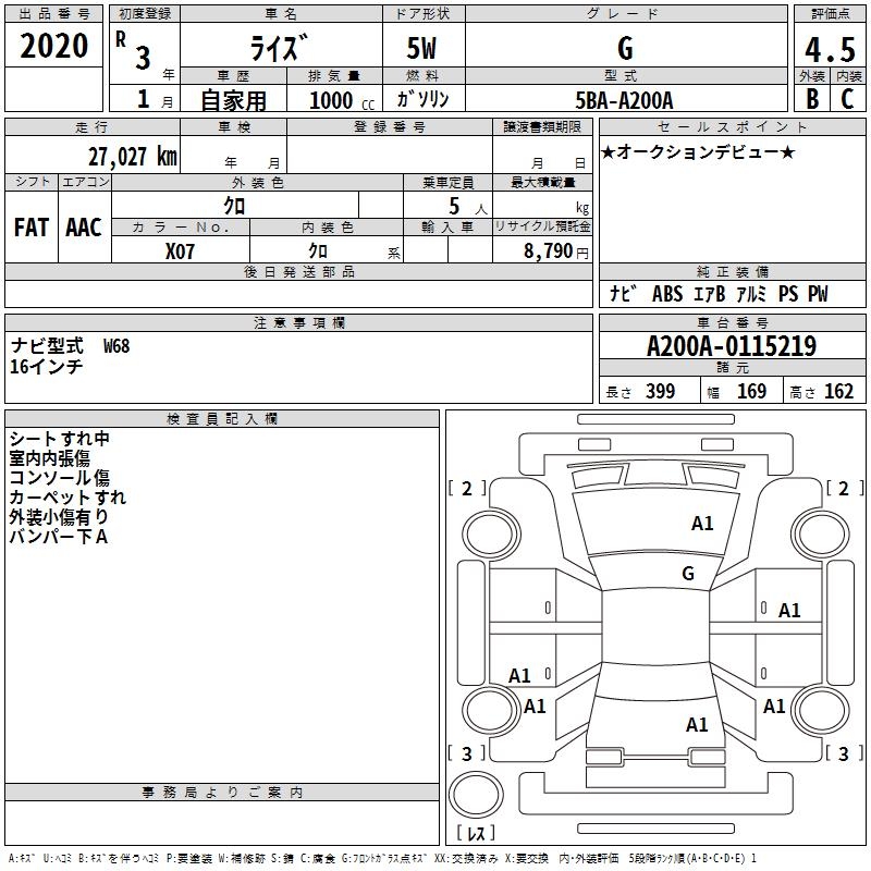 TOYOTA RAIZE - лот 2020