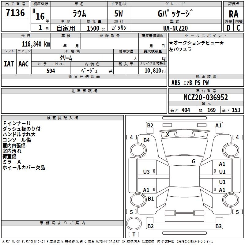 TOYOTA RAUM G PACKAGE - лот 7136