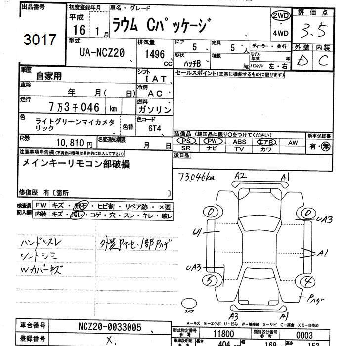 TOYOTA RAUM C PACKAGE - лот 3017