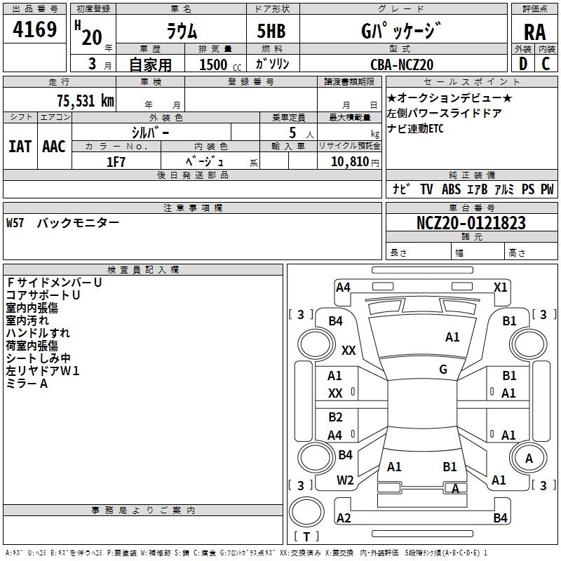 TOYOTA RAUM G PACKAGE - лот 4169