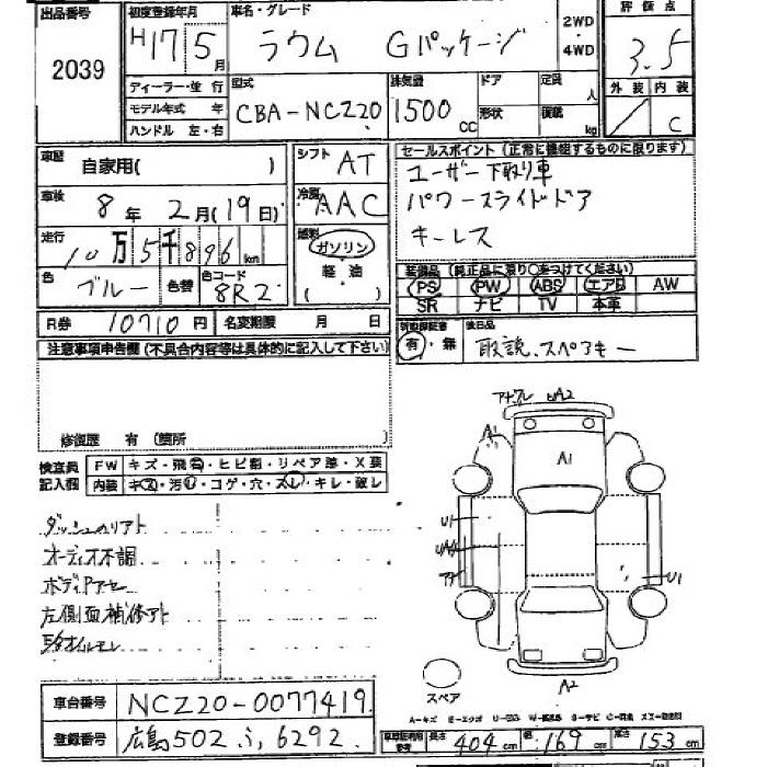 Все аукционы TOYOTA RAUM