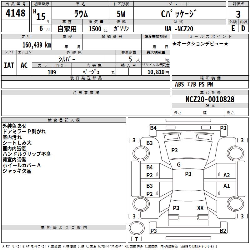 TOYOTA RAUM C PACKAGE - лот 4148