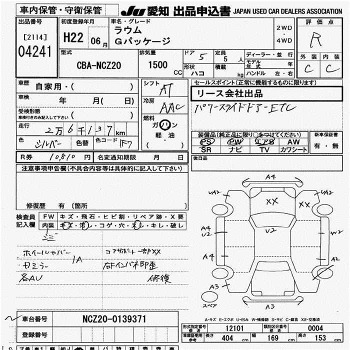 Все аукционы TOYOTA RAUM
