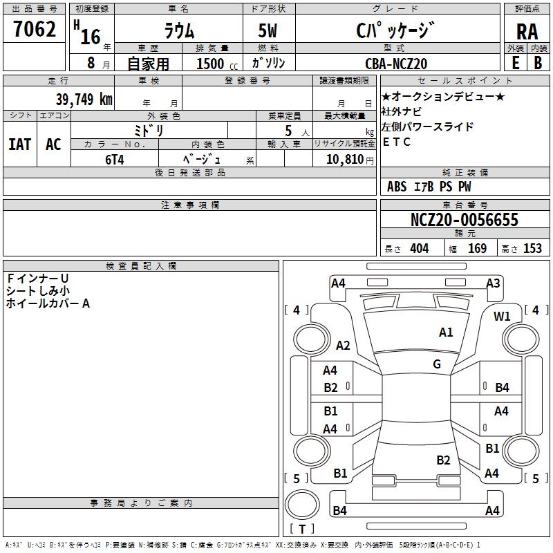 TOYOTA RAUM C PACKAGE - лот 7062
