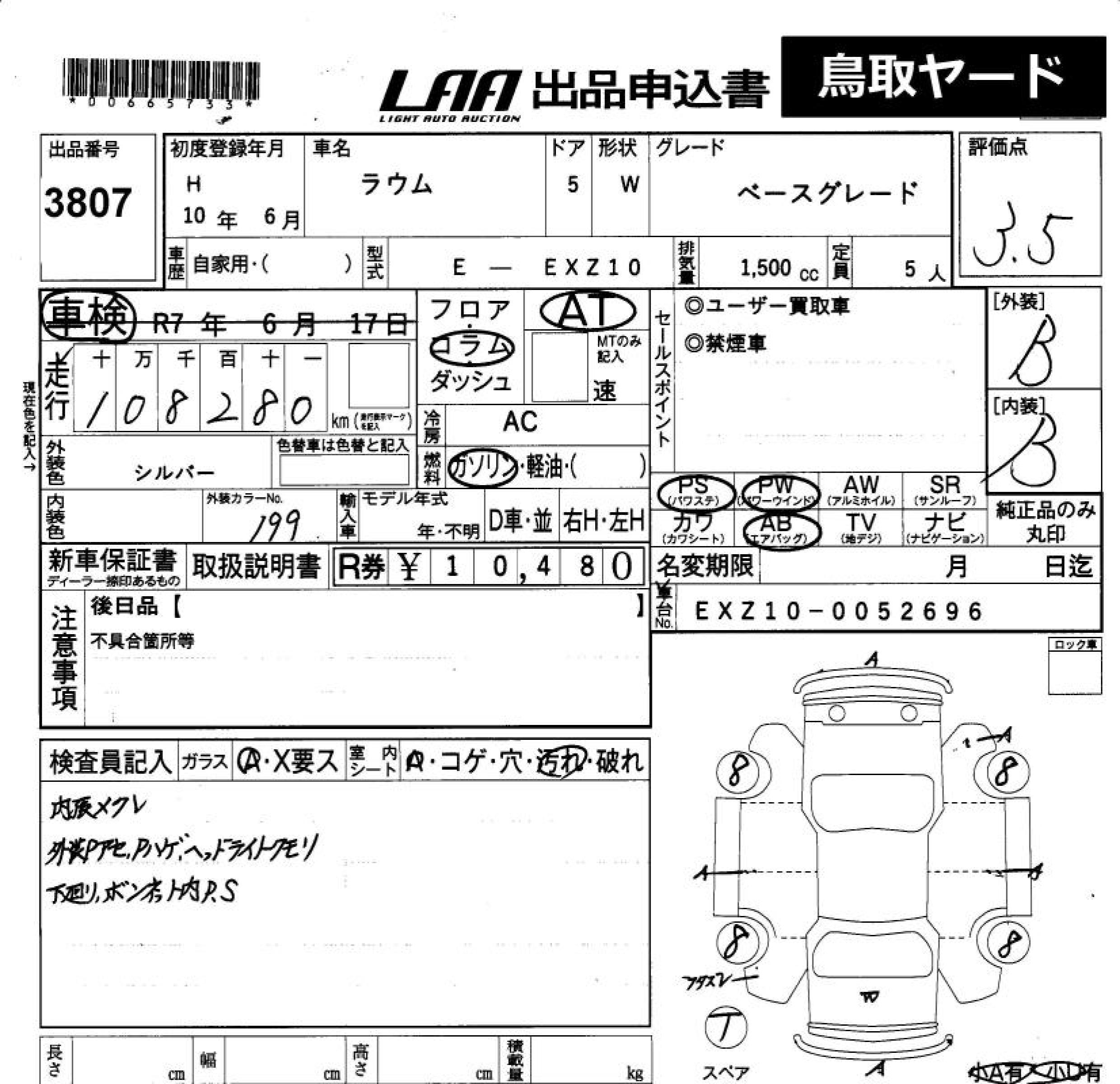 TOYOTA RAUM RAUM - лот 3807