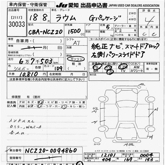 TOYOTA RAUM G PACKAGE - лот 30033