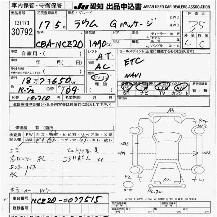 TOYOTA RAUM G PACKAGE - лот 30792