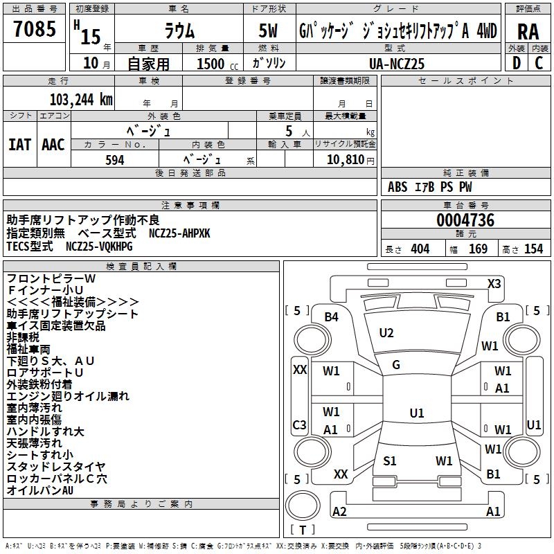 TOYOTA RAUM G PACKAGE JOSHU SEAT LI4WD - лот 7085