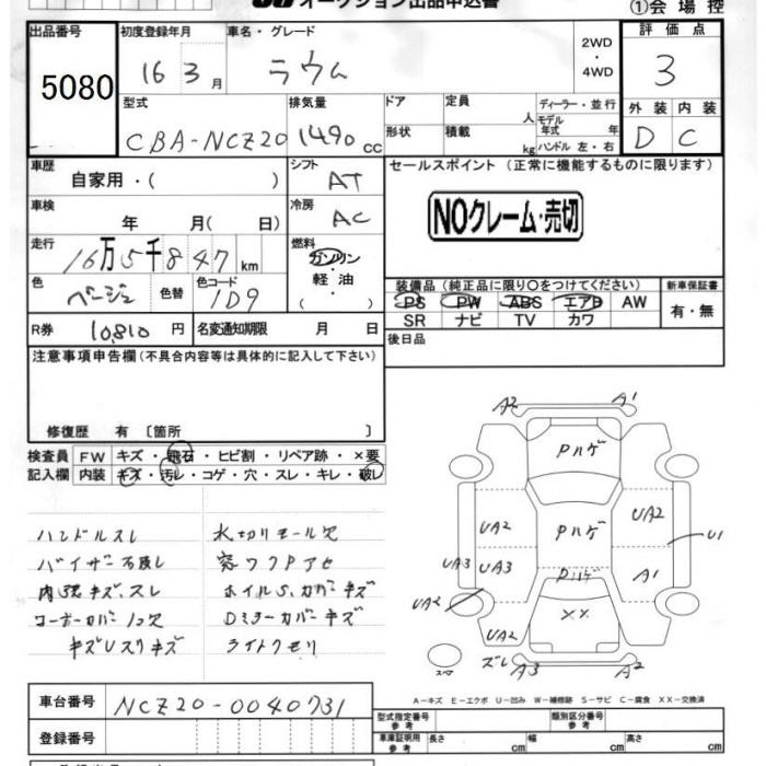 TOYOTA RAUM - лот 5080