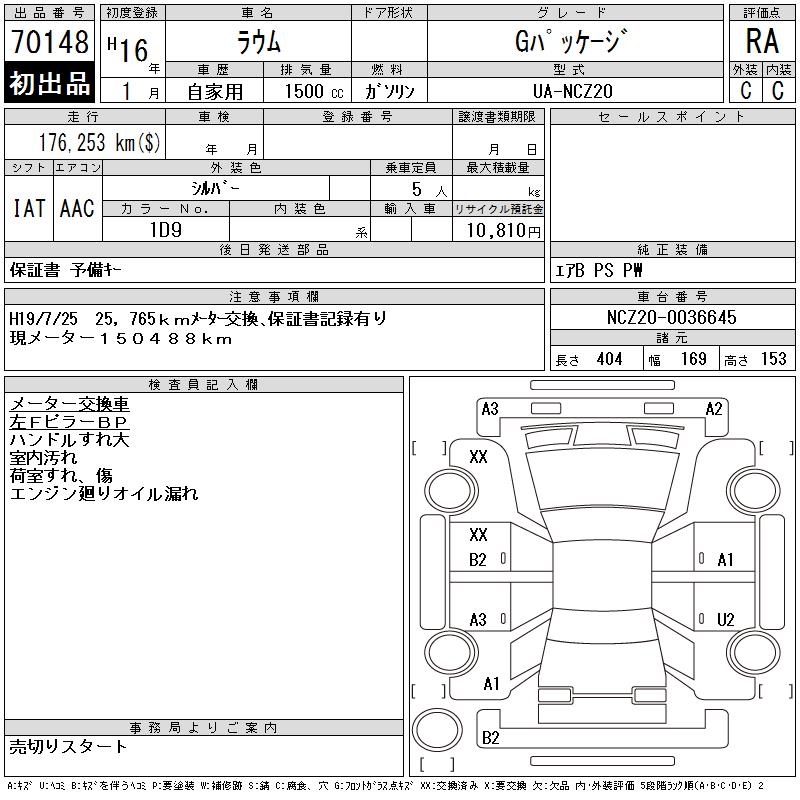TOYOTA RAUM G PACKAGE - лот 70148