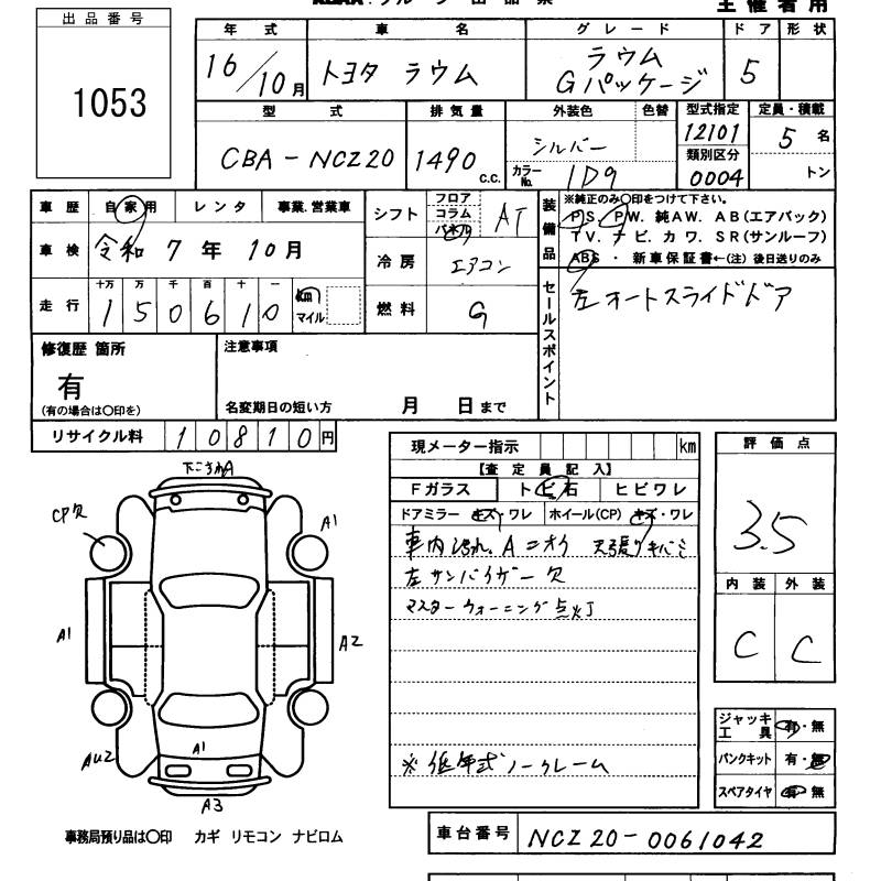 TOYOTA RAUM G PACKAGE - лот 1053