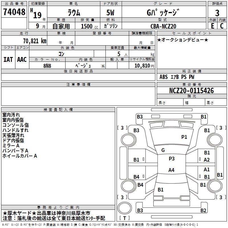 TOYOTA RAUM G PACKAGE - лот 74048