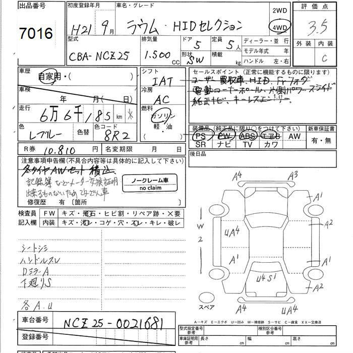 TOYOTA RAUM 4WD HID SELECTION - лот 7016