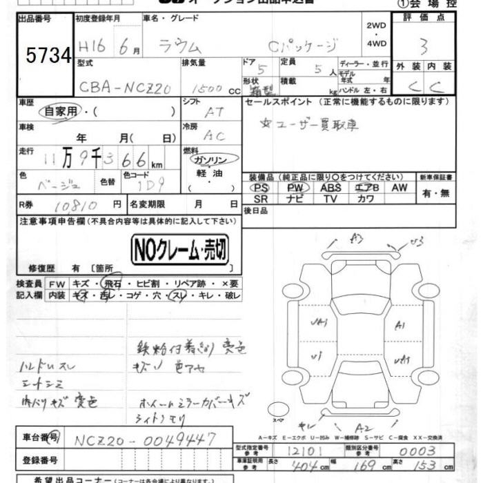 TOYOTA RAUM C PACKAGE - лот 5734