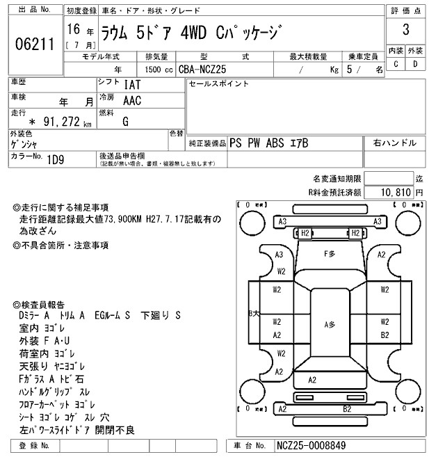 TOYOTA RAUM C PACKAGE - лот 6211