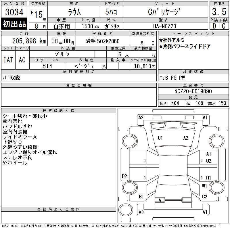 TOYOTA RAUM C PACKAGE - лот 3034