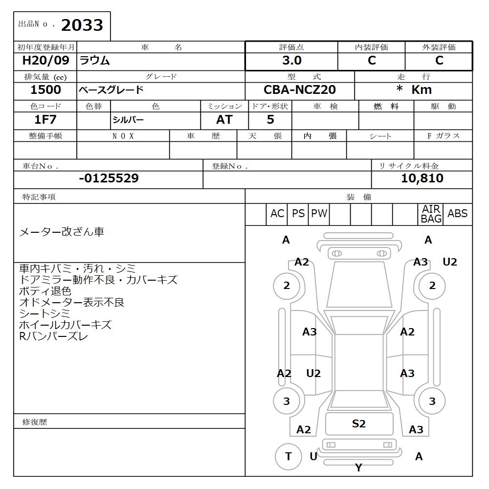 TOYOTA RAUM BASE GRADE - лот 2033