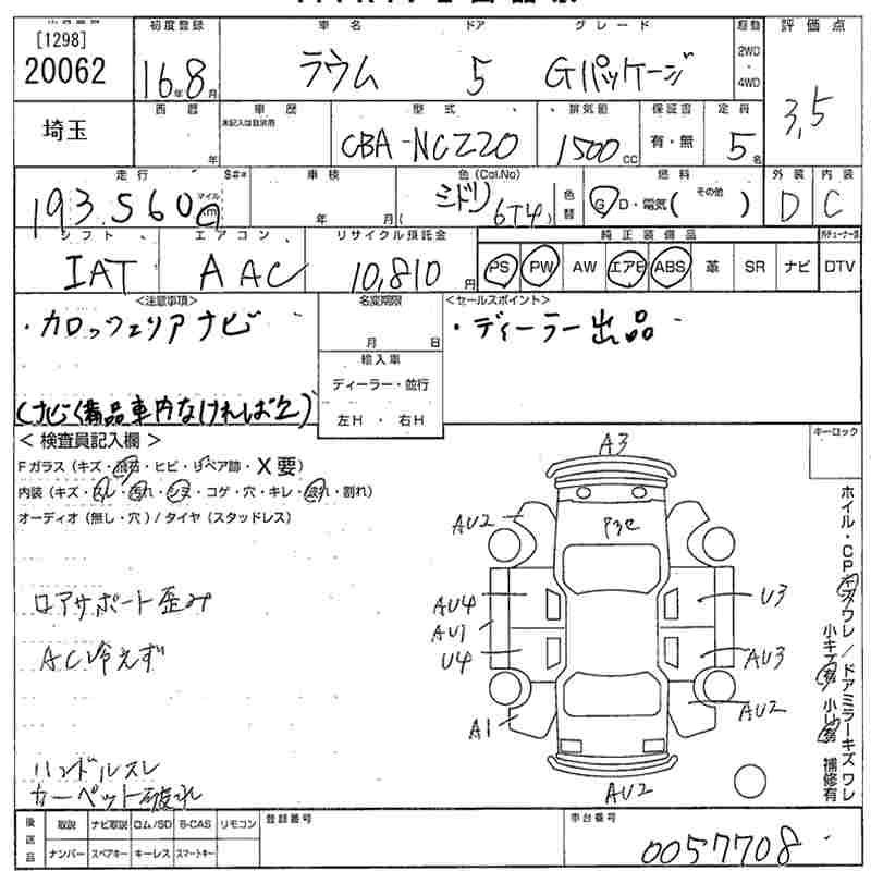 TOYOTA RAUM G PACKAGE - лот 20062