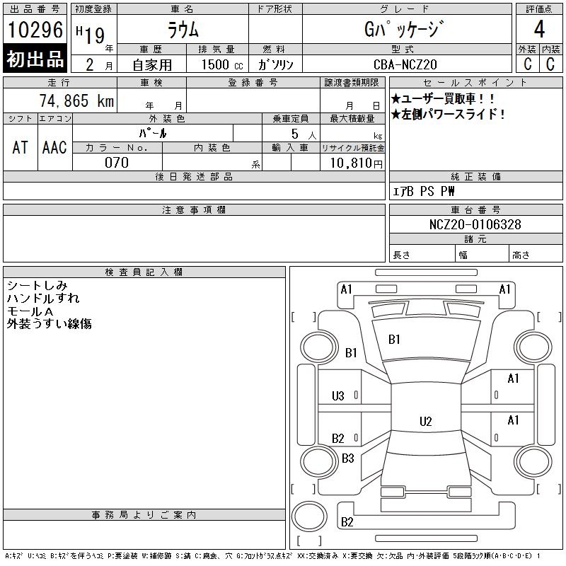TOYOTA RAUM G PACKAGE - лот 10296