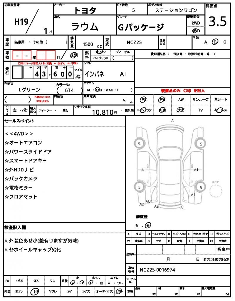 TOYOTA RAUM - лот 7282