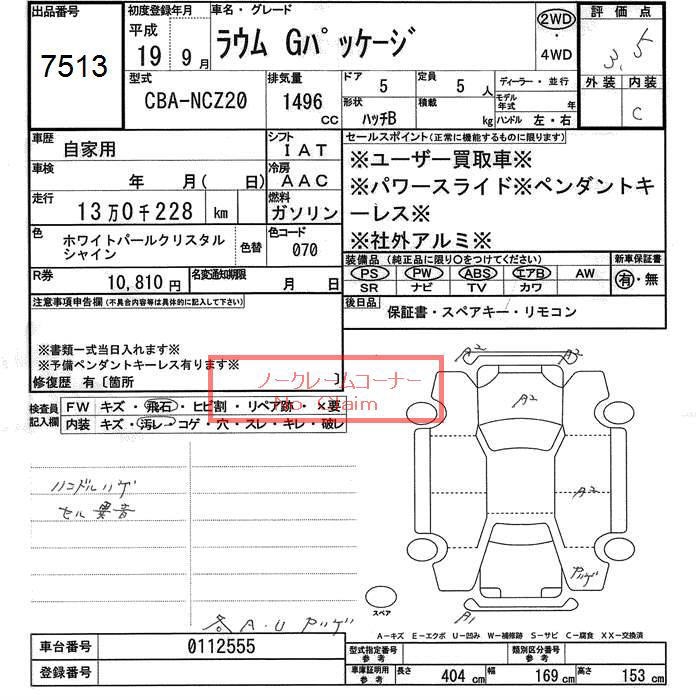 TOYOTA RAUM G PACKAGE - лот 7513