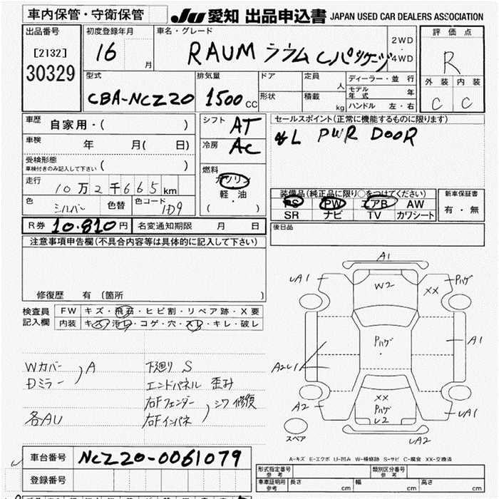 TOYOTA RAUM C PACKAGE - лот 30329